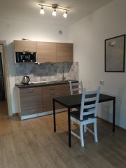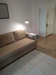 В квартире сделан современный евроремонт. В комнате есть вся необходимая мебель для комфортного проживания. Из техники в вашем распоряжении: холодильник, телевизор и стиральная машина. Ванная комната оборудована душевой кабиной, что добавляет удобства.