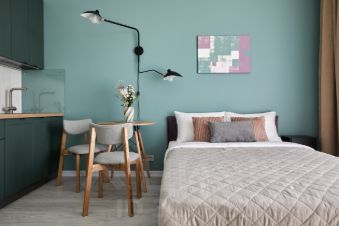 Мы — не отель: после каждого выезда постельное бельё стирается и сушится прямо в квартире — чистота и забота о вас в каждой детали.