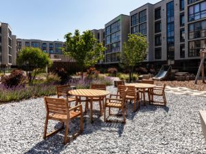 Приглашаем Вас отдохнуть в Апартамент Aquamarine Resort, который находится в Курортном районе города Санкт-Петербурга, в новом ЖК Bereg Курортный в отдаленном месте от городского шума и магистралей, вблизи Финского залива. Предназначен для ценителей красоты, единения с природой и комфорта. Охраняемая территория комплекса располагает для прогулок и отдыха, в теплую погоду можно поужинать в одной из беседок и перекусить на свежем воздухе.