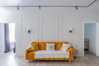 Стильный дизайнерский интерьер: две уютные спальни, просторная гостиная с кухней и окна с зеркальным напылением для полной приватности.