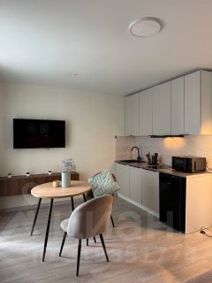 Представляем вашему вниманию уютную студию с дизайнерским ремонтом, оборудованную для проживания всем необходимым: комфортная двуспальная кровать с ортопедическим матрасом, высокоскоростной интернет Wi-Fi, ТВ, стиральная машина, утюг, фен, СВЧ, чайник, холодильник, электрическая плита, посудомоечная машина, посуда, постельное белье и полотенца для всех гостей, а так же гигиенические принадлежности.