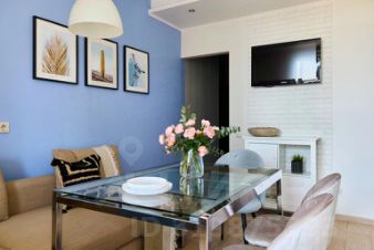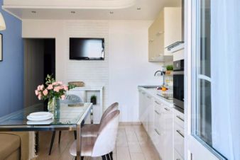 Квартира предназначена для размещения до четырёх гостей. Спальные места — двуспальная кровать 180200 см, раскладной диван 140200 см.