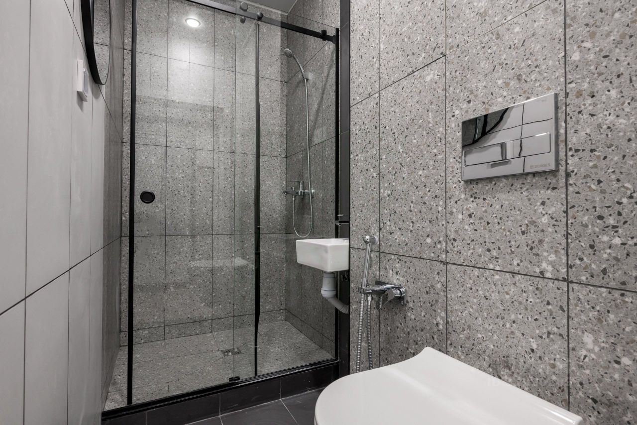 Собственный санузел, где есть душ и туалет. Утюг и фен для вашего удобства, а также стиральная машинка, чтобы всегда иметь свежую одежду под рукой.