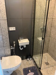 Собственный санузел, где есть душ и туалет. Утюг и фен для вашего удобства.
