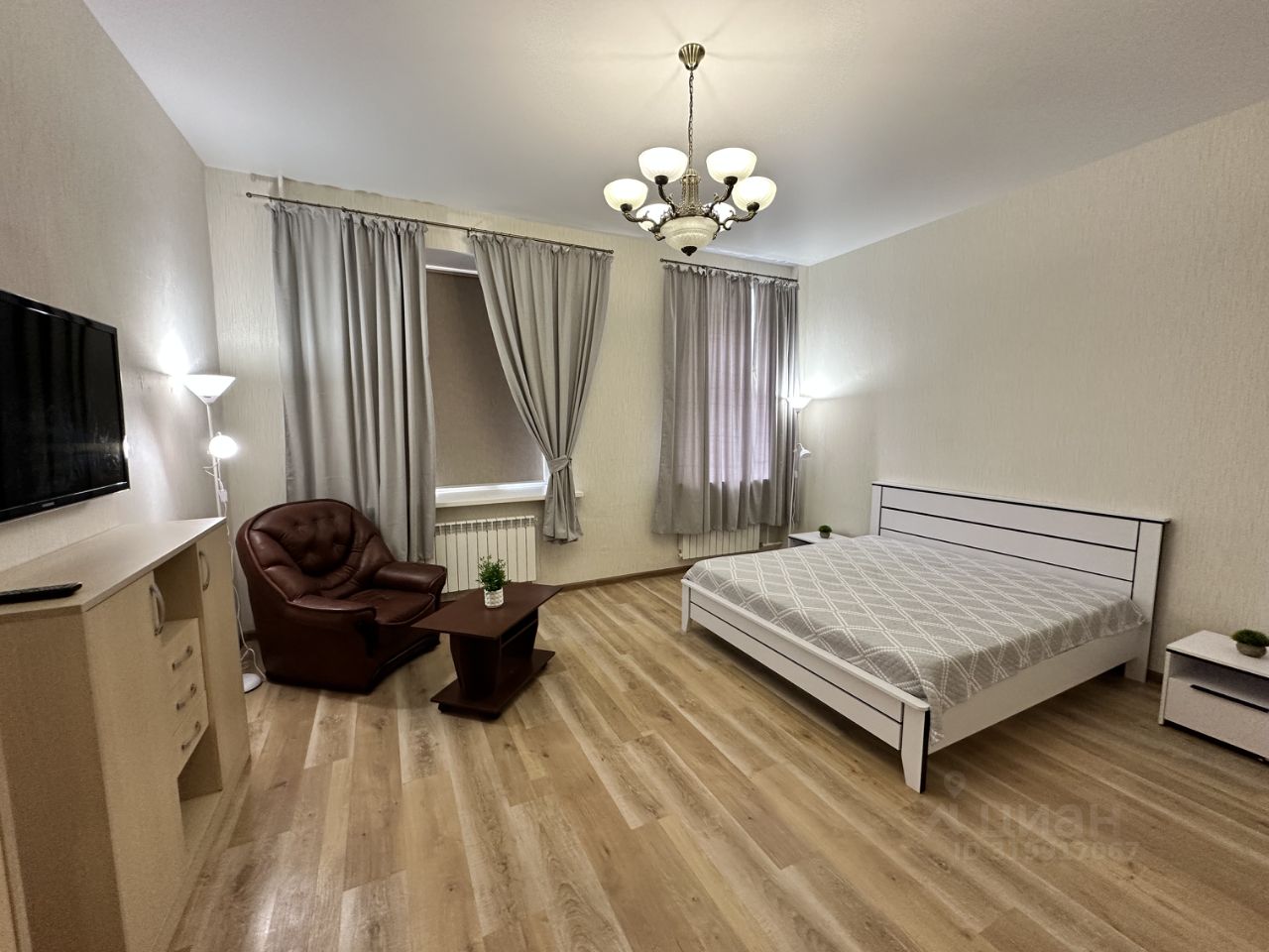 - Просторная, светлая комната укомплектована двуспальной кроватью , тумбочки, журнальный столик, комод,ТВ, шкаф, окна выходят во двор, квартира двусторонняя.