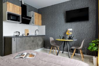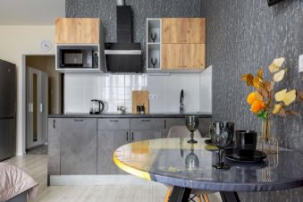 Квартира оборудована всем необходимым для комфортного проживания (мебель и бытовая техника, в том числе посудомоечная машина, а также посуда и столовые приборы).