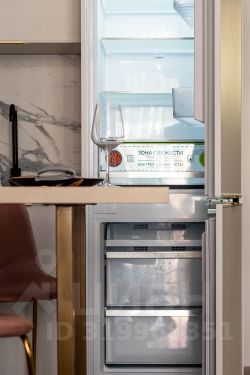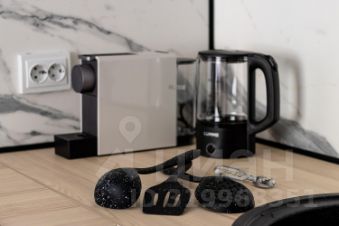 Кухня со всем необходимым (холодильник, варочная панель, чайник, кофемашина ,а так же посуда, приборы )