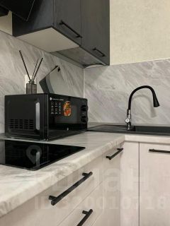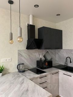В студии сделан качественный ремонт. Пространство разделено на зоны для отдыха и приготовления пищи. Студия оборудована необходимой мебелью и техникой.