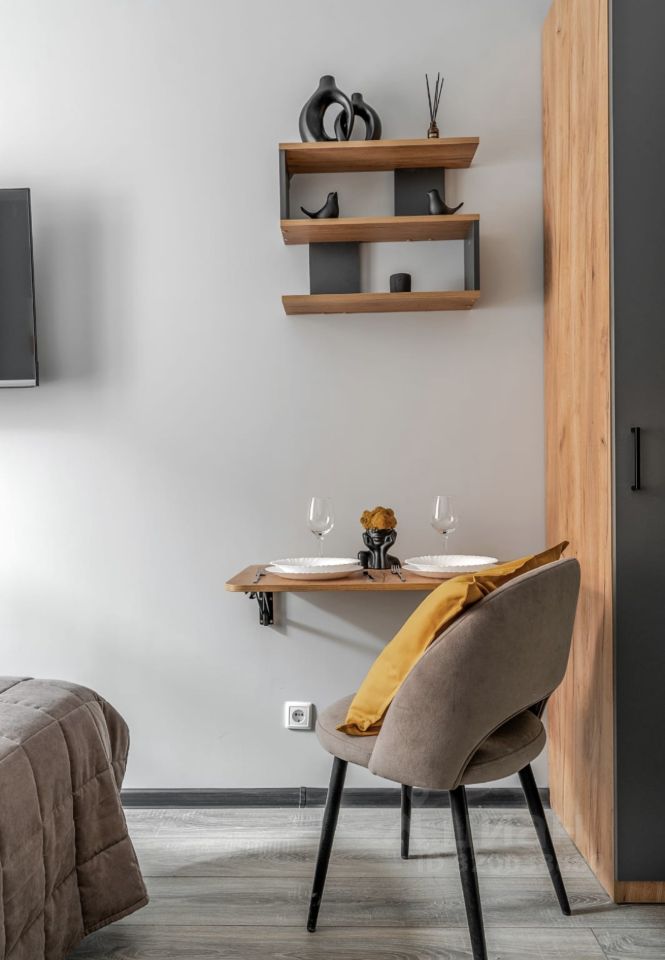варочная панель и СВЧ, посуда, вы с лёгкостью сможете приготовить завтрак или обед
