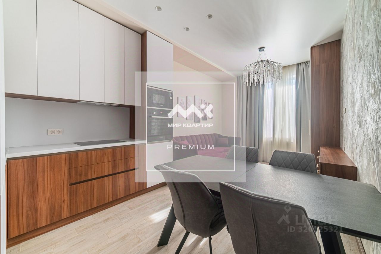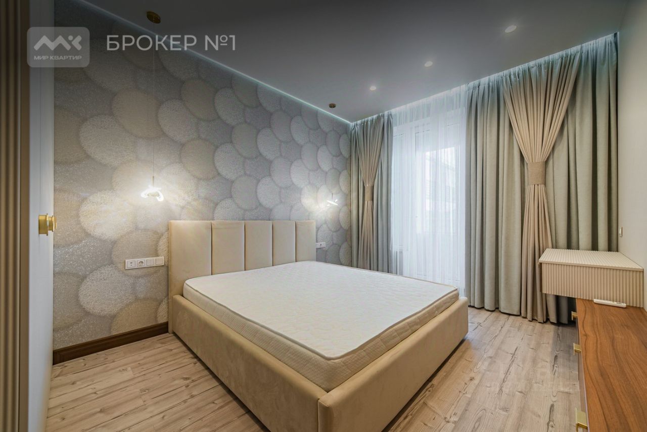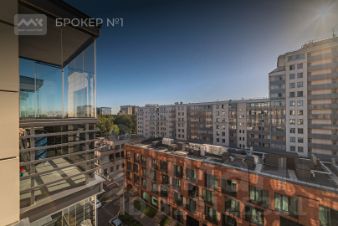 Квартира расположилась на 8-м этаже, общей площадью 76 м2, две изолированные спальни, одна из которых с лоджией, кухня оборудованная всей необходимой техникой, два полноценных сан.узла, гардеробная комната. Двусторонняя планировка.