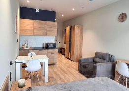 Квартира находится в современном, стильном здании с круглосуточной охраной, консьержем, зонами коворкинга, есть кафе, рестораны. Доступен подземный паркинг. Рядом фитнес зал, множество кафе, ресторанов, магазинов, детских площадок. До центра- 15 минут езды на машине. В пешей доступности (5-10 минут) Ладожский вокзал и метро Ладожская.