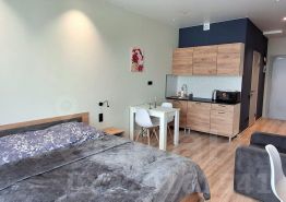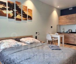 Студия оформлена в дизайнерском стиле, что создаёт уютную и современную атмосферу. В квартире есть вся необходимая мебель как на кухне, так и в комнате, поэтому вы сможете сразу почувствовать себя как дома. Оснащена всей необходимой техникой: холодильник, телевизор и стиральная машина. Ванная комната оборудована душевой кабиной, что обеспечивает удобство и функциональность. Имеется дополнительное третье спальное место (кресло-кровать) и вентилятор.