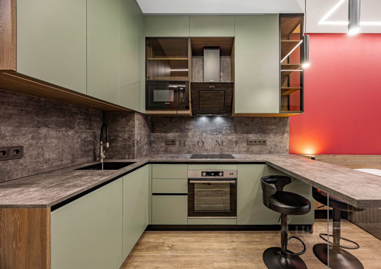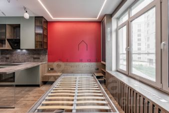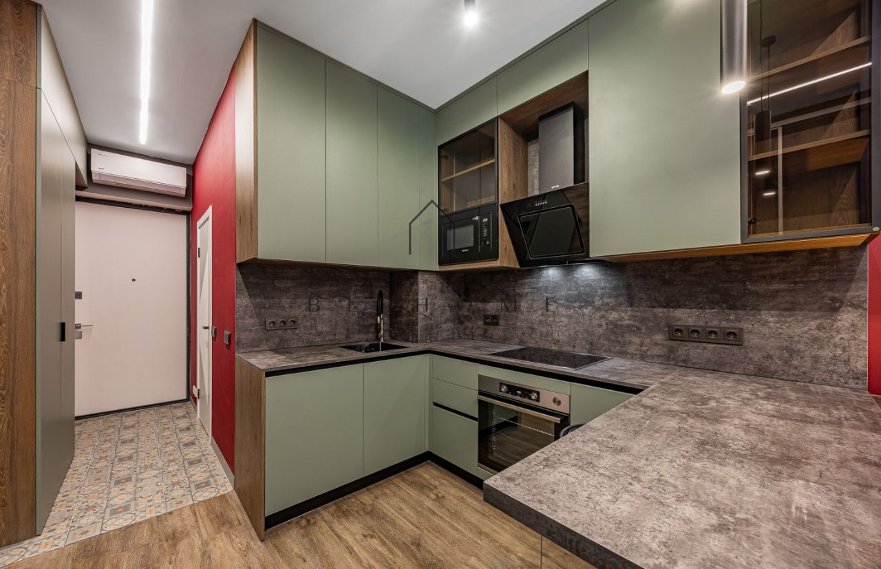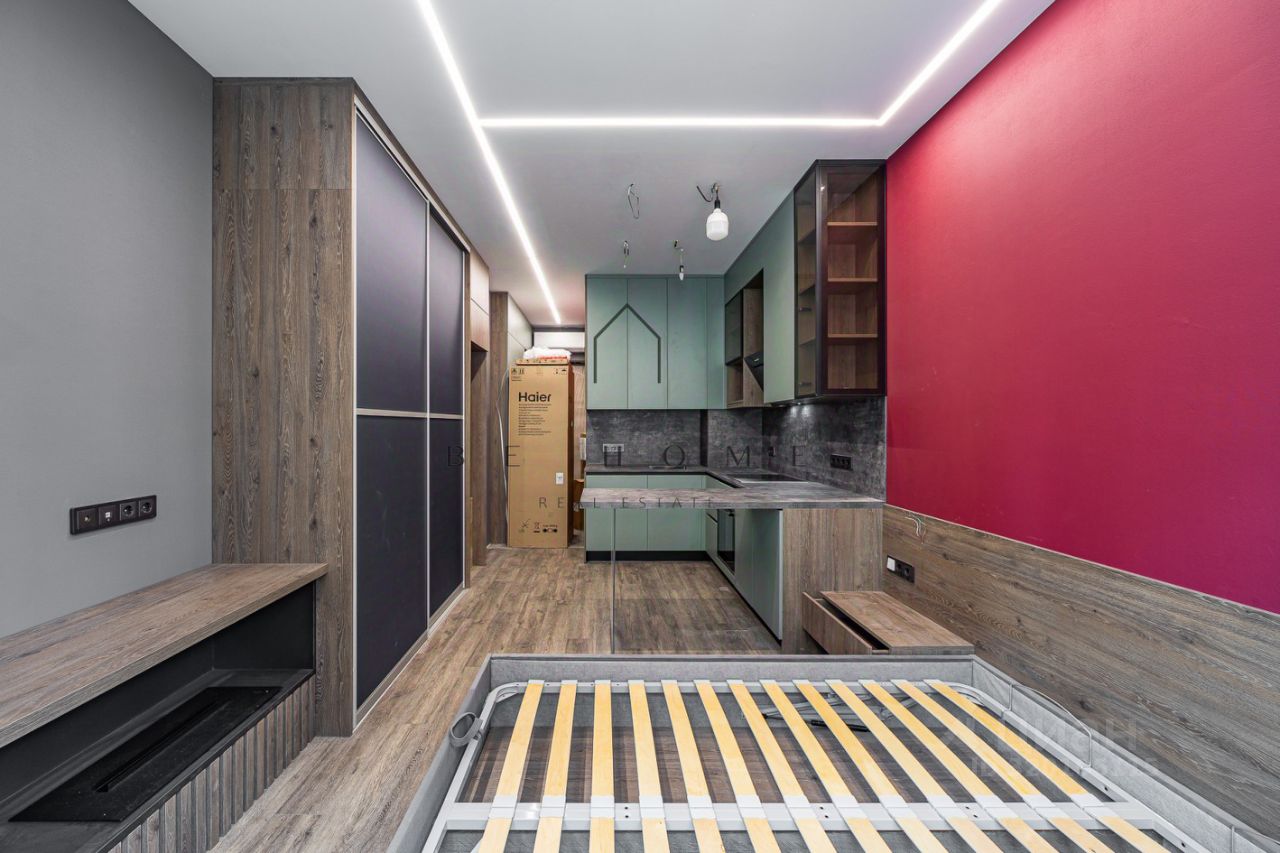 Продуманная планировка квартиры с зонированием. Большая зона кухни со всей необходимой техникой. Зона отдыха с электрическим камином. Совмещенная ванная комната с душевой кабиной. Зона прихожей.