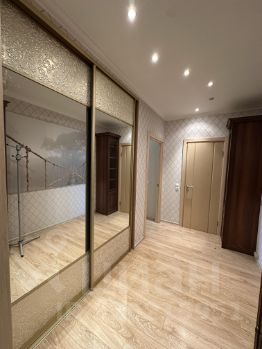 В коридоре имеется шкаф-купе, два книжных стеллажа, а также продуманная входная группа с необходимыми вешалками и полками.