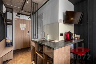 Кухонный уголок с варочной поверхностью, мини холодильником, СВЧ печью, электрочайником, капсульной кофемашиной и всей необходимой посудой и кухонной утварью