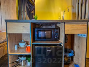 Кухонный уголок с варочной поверхностью, мини холодильником, СВЧ печью, электрочайником, капсульной кофемашиной и всей необходимой посудой и кухонной утварью