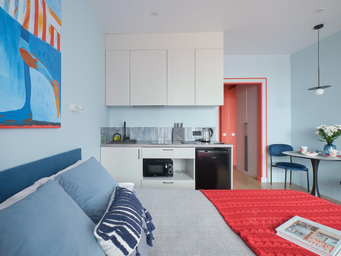 Видовая, стильнaя, дизaйнерская квартира на берегу Финского залива с видом на Залив (26 кв. м, в том числе лоджия-5 кв.м.) в новом доме Бизнес класса. В квартире выполнен дизайнерский ремонт: спальня-гостиная, прекрасно оборудованный санузел и просторная уютная лоджия с прекрасными закатами).