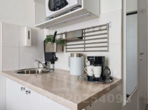 - Кухня с плитой и микроволновкой, холодильником, чайником и кофеваркой