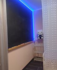 Комната 2: кровать с ортопедическим матрасом нишами для хранения, стол рабочий, кресло , шкаф для хранения , стена грифельная для творчества и заметок, освещение с функцией смены цвета света.