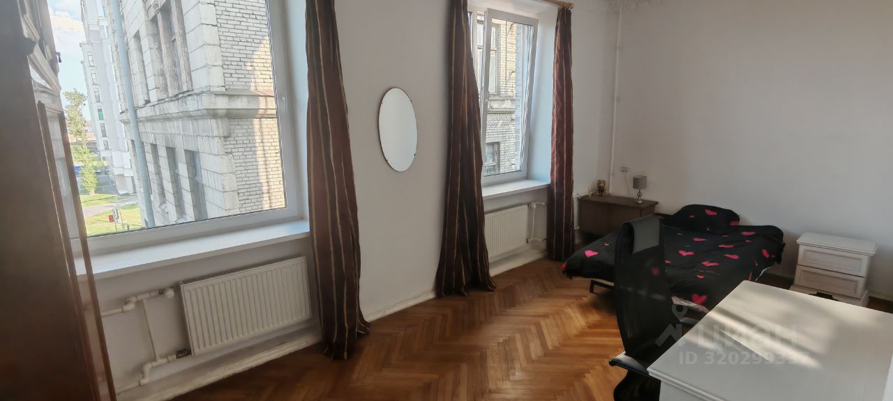 Собственно, все видно на фото. Очень просторная комната, большие окна, потолки 3 метра +.