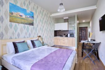 Приглашаем вас в уютную и просторную квартиру студию площадью 26 м², GetFlat, расположенную в одном из самых зелёных и спокойных районов Санкт-Петербурга.