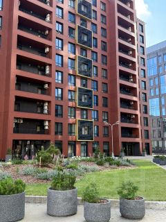 Охроняемый закрытый двор с ландшафтом без машин, так же пост охраны в подъезде.