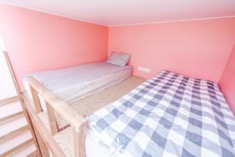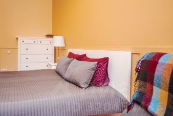 В квартире 2 (две) изолированные спальни и 1 (одна) гостиная, которая также может быть использована как спальня. В большой комнате два удобных дивана, которые раскладываются в широкие двухспальные кровати. Общее количество спальных мест 6 шт. Каждая комната полностью укомплектована мебелью.