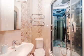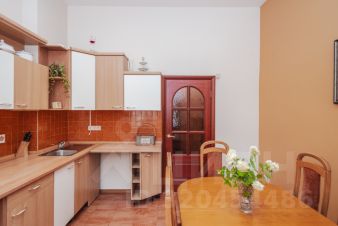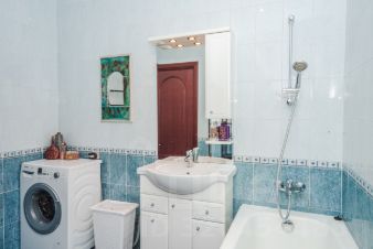 В квартире два санузла (один с ванной, другой с душевой кабиной). Вместительная кухня (16 кв.м) с большим обеденным столом, за которым комфортно разместится от 6 до 10 чел.