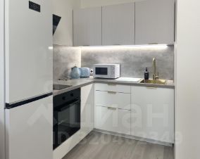Техника на кухне: холодильник, духовой шкаф, варочная панель, микроволновка, чайник, тостер.