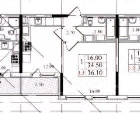 Площадь квартиры 38,1 м2.