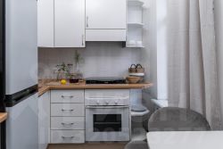 На кухне холодильник, плита, микроволновая печь, духовой шкаф, стиральная машина.