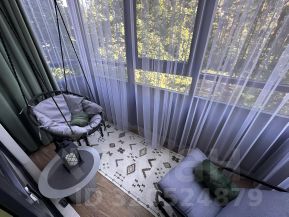Балкон-мечта: подвесная качель и "инстаграмная" зона отдыха с гирляндой и пледами — Ваше место силы с видом на сосновый лес.