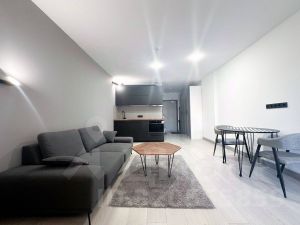 Апартаменты с новым дизайнерским ремонтом в спокойных тонах, полностью укомплектованы мебелью и современной техникой. Высокие потолки и большие окна наполняют пространство светом. Планировка продумана: жилая зона, кухня-ниша и современный санузел.