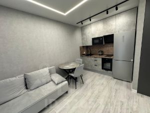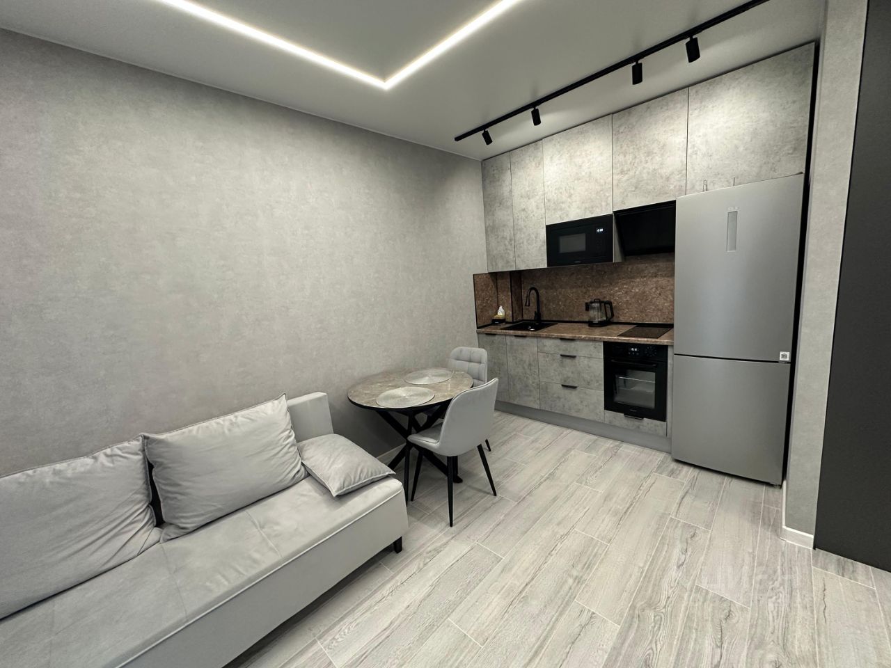 - кухня-гостиная с духовым шкафом, варочной панелью, микроволновкой и холодильником
