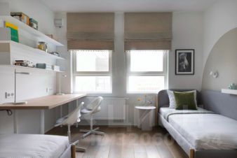 В квартире есть отдельная спальня с двуспальной кроватью, комната с двумя односпальными кроватями и гостиная, объединённая с кухней. Пространство оборудовано диваном, телевизором, мебелью, сантехникой и системой климат-контроля.