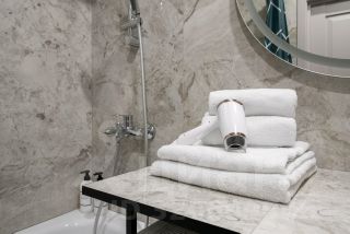 Собственный санузел, где есть ванная и туалет. Утюг и фен для вашего удобства, а также стиральная машинка, чтобы всегда иметь свежую одежду под рукой.