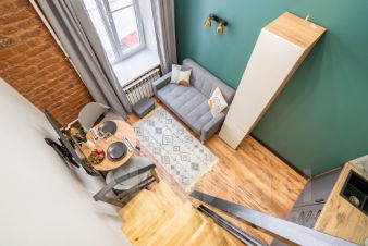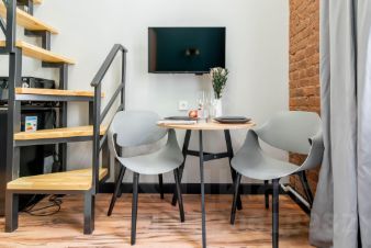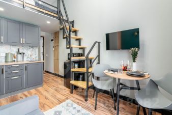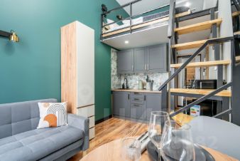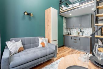 Площадь студии составляет 15 м² + 4 м² второго яруса, который является спальным местом. Возможное размещение: до 3 человек.