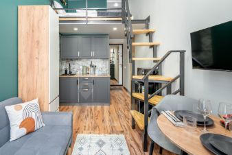 Современное оснащение: В студии есть все необходимое для комфортного проживания: новая мебель, полностью оборудованная кухня, высокоскоростной Wi-Fi, ЖК-телевизор, стиральная машина, фен.