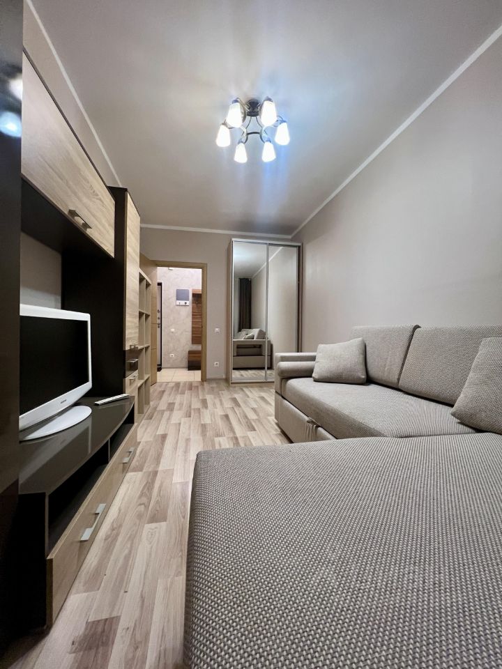 В квартире сделан стильный евроремонт. Просторная жилая площадь в 19 кв. м обставлена необходимой мебелью, чтобы вы могли сразу заехать и жить комфортно. Кухня площадью 12 кв. м оснащена современной техникой: холодильником, посудомоечной машиной и стиральной машиной. В комнате установлен телевизор, а в ванной комнате есть удобная ванна. Окна квартиры выходят во двор, поэтому в помещении всегда тихо и спокойно. Также есть лоджия, где можно отдохнуть на свежем воздухе.