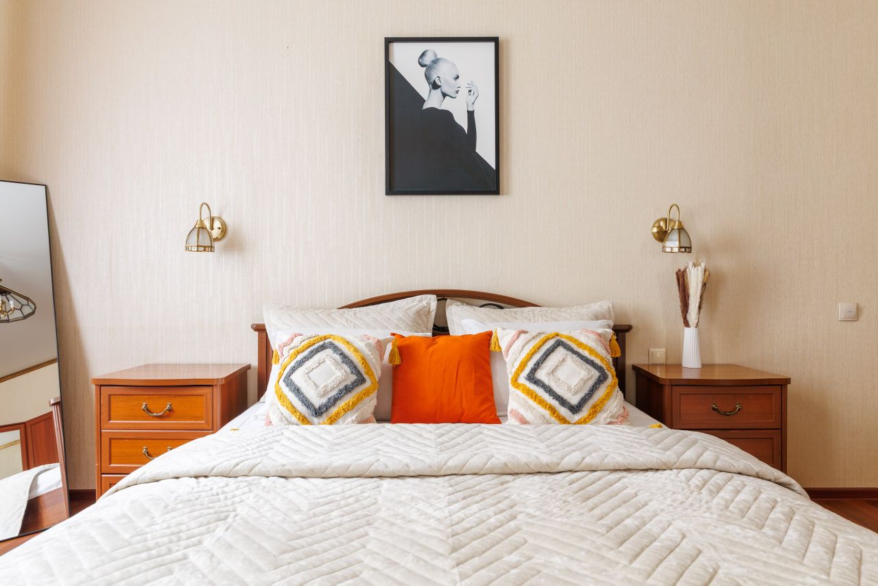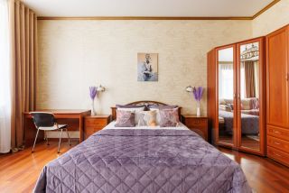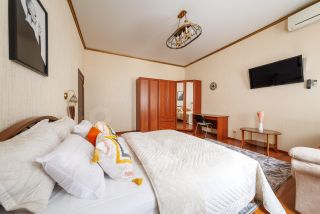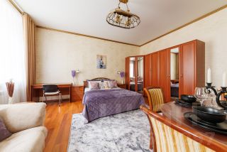 В каждой комнате: двуспальная кровать и двуспальный диван, ТВ, кондиционер, большой шкаф-гардероб, письменный стол, обеденная группа.