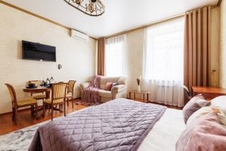 2 изолированные спальни-гостиные с зоной отдыха, одинаково меблированы и укомплектованы по отельным стандартам, отдельная кухня, раздельный сан. узел.