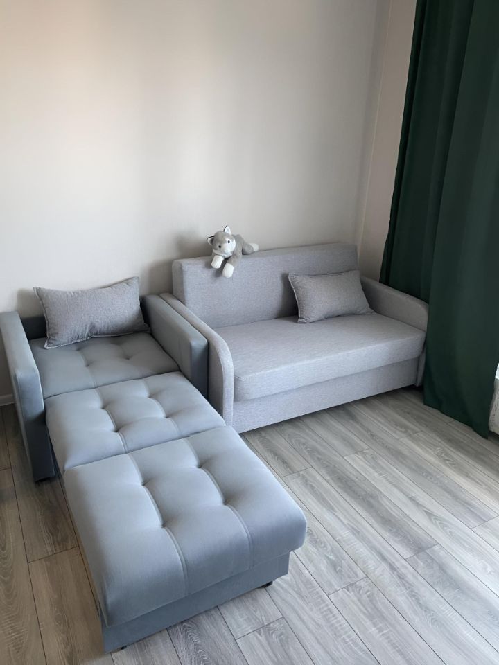 Студия оснащена, двухспальным диван- кроватью и креслом- кроватью.