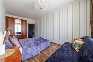 Большая квартира общей площадью 110 кв. м, с 3 изолированными комнатами и 2 санузлами: совмещенный сан. узел с ванной и туалетом и отдельная туалетная комната. Большая отдельная кухня, лоджия с панорамным остеклением и балкон.