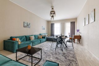 Квартира площадью 120 кв. м , состоит из 3 изолированных комнат и отдельной кухни-столовой. В квартире есть кондиционер.