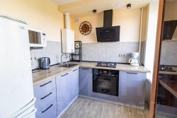Новая 2-комнатная дизайнерская квартира с простойной кухней-столовой для 6 гостей.