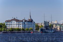 Тихая и зелёная локация не очень далеко от берега Невы. Позавтракать можно в кафе прямо об этом доме и купить продукты.