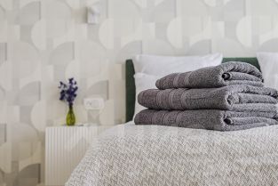 Для наших гостей всегда свежие и чистые полотенца , заправленный комплект постельного белья , жидкое мыло , гель для душа , шампунь для волос, порошок для стирки, утюг , фен для волос .