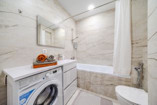 санузел с ванной : стиральная машина , просторная ванная комната)