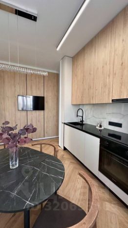 - кухня-гостиная с дизайнерским диваном и телевизором (фото 7,8)