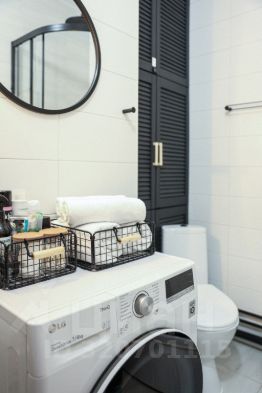 Пространство организовано так, чтобы всё было на своих местах. Уборка — до блеска перед каждым заездом. Поддерживать порядок легко — есть робот-пылесос. Для ухода за вещами — стиральная машина с сушкой, утюг и гладильная доска.